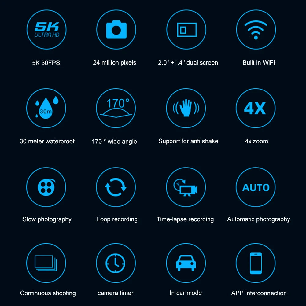 5K 4K 60FPS Action Camera Waterproof Dual Screen WiFi Sport Cam with Remote Stabilization