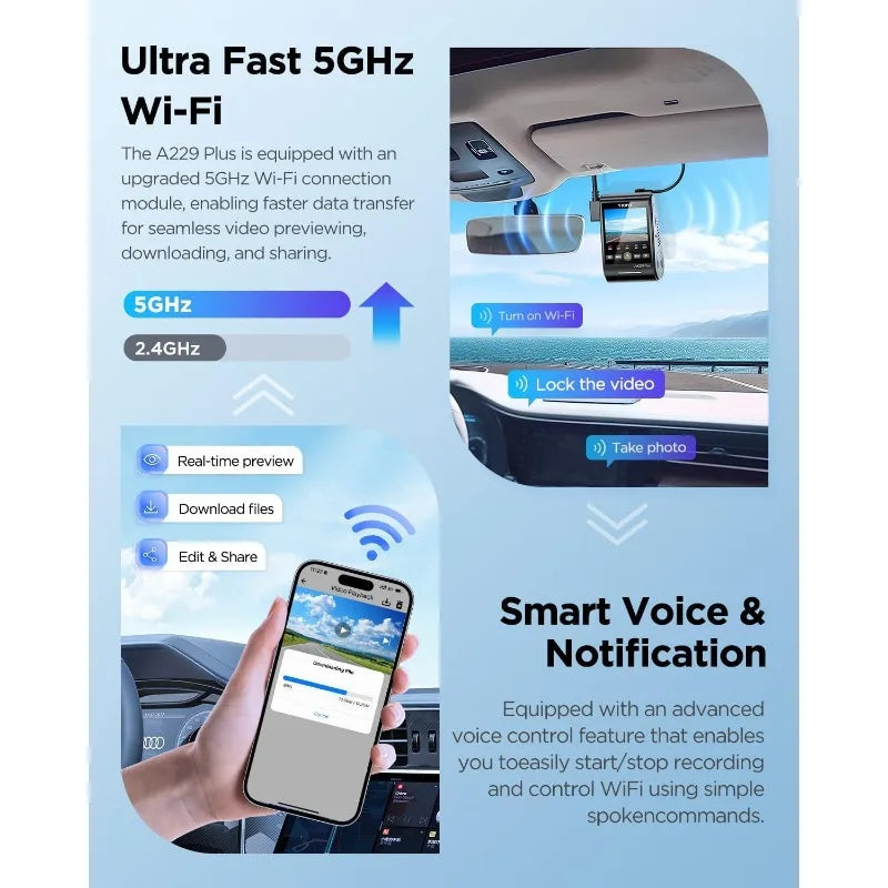 A229 Plus Dash Cam Front and Rear, Dual STARVIS 2 Sensors, 2 Channel HDR, 1440P+1440P Voice Control