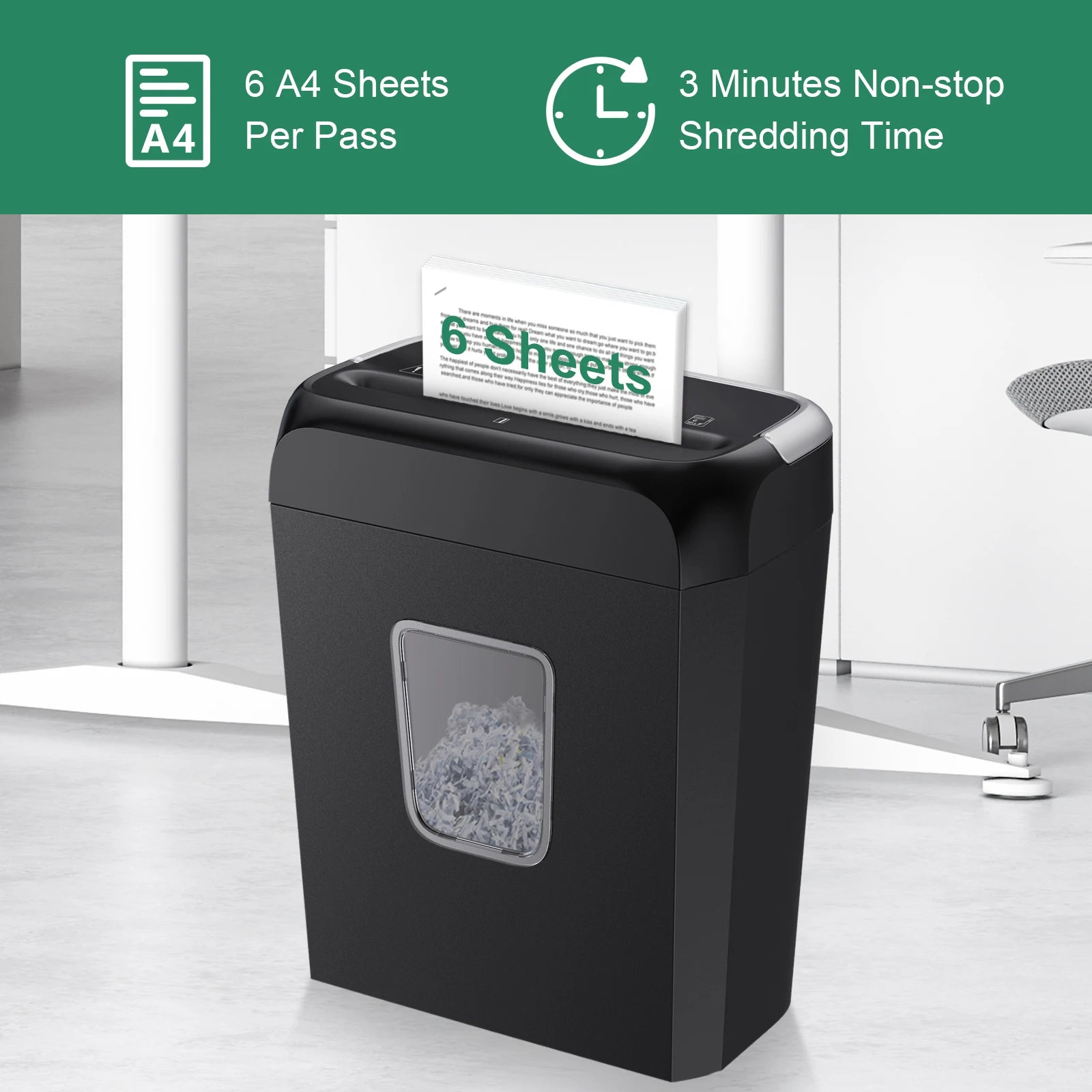 Bonsaii 6-Sheet Cross Cut Paper Shredder Home Office Use with Handle for Document,Mail,Staple,Clip with Overheat protection