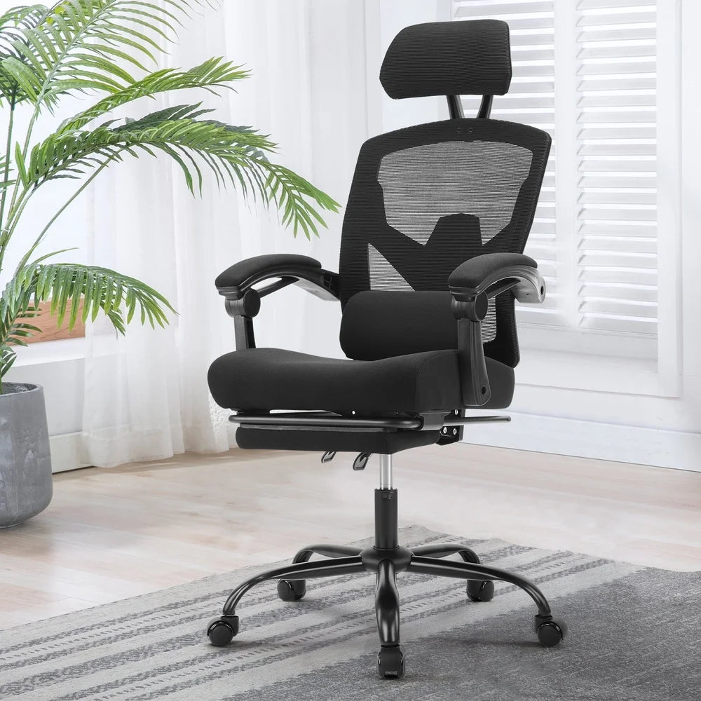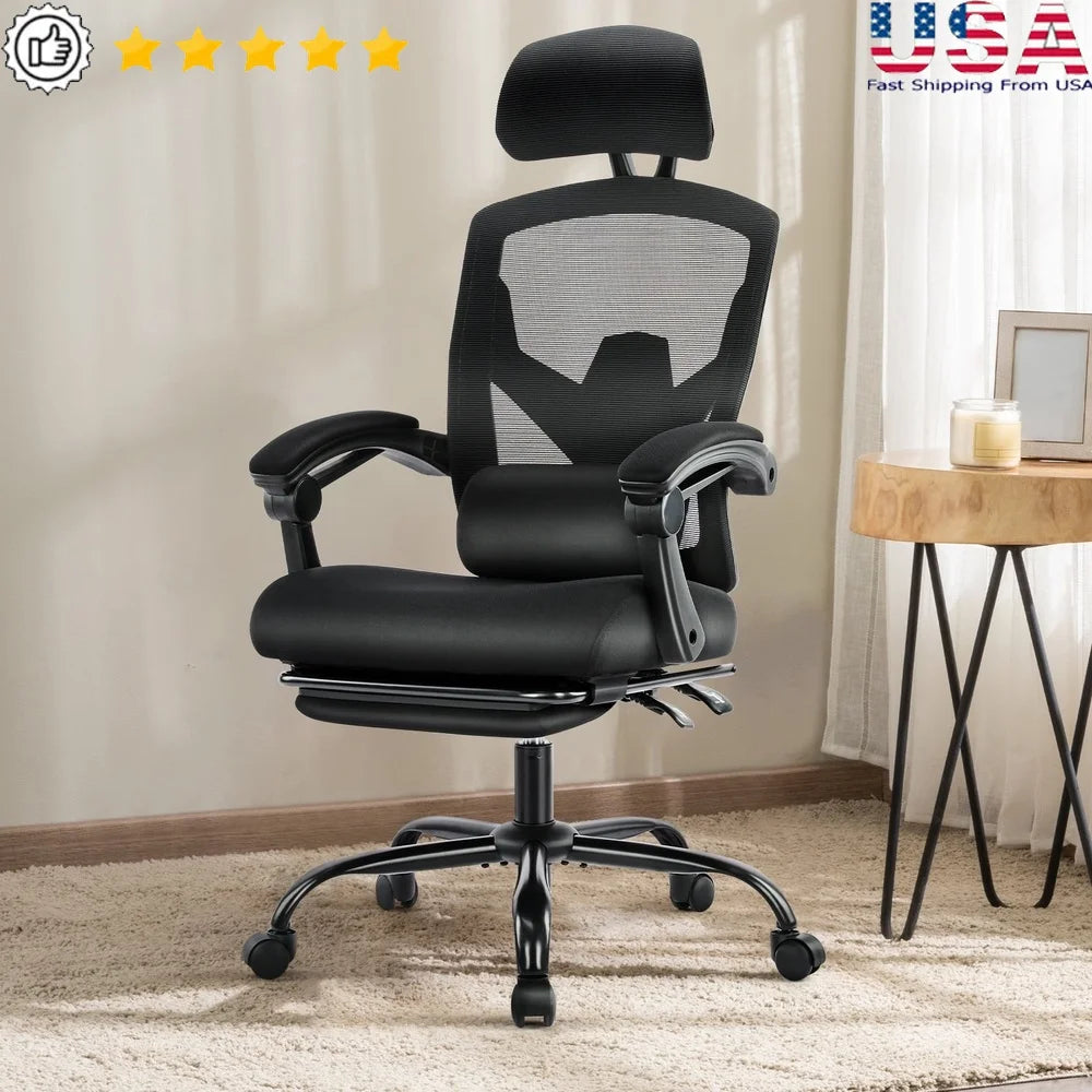 Ergonomic Office Chair High Back Mesh Reclining Lumbar Support Adjustable Headrest Footrest Padded Arms Smooth Rolling Casters