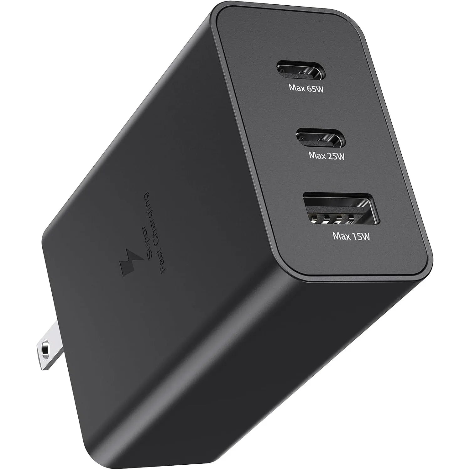 GaN Adapter 65W 3-Port Wall Charger for Samsung Galaxy S24/S23/S22/S22 Ultra/S22+/S21 Ultra/S20 Ultra/Note 20/Z Fold 3/ laptops