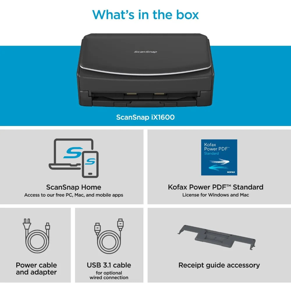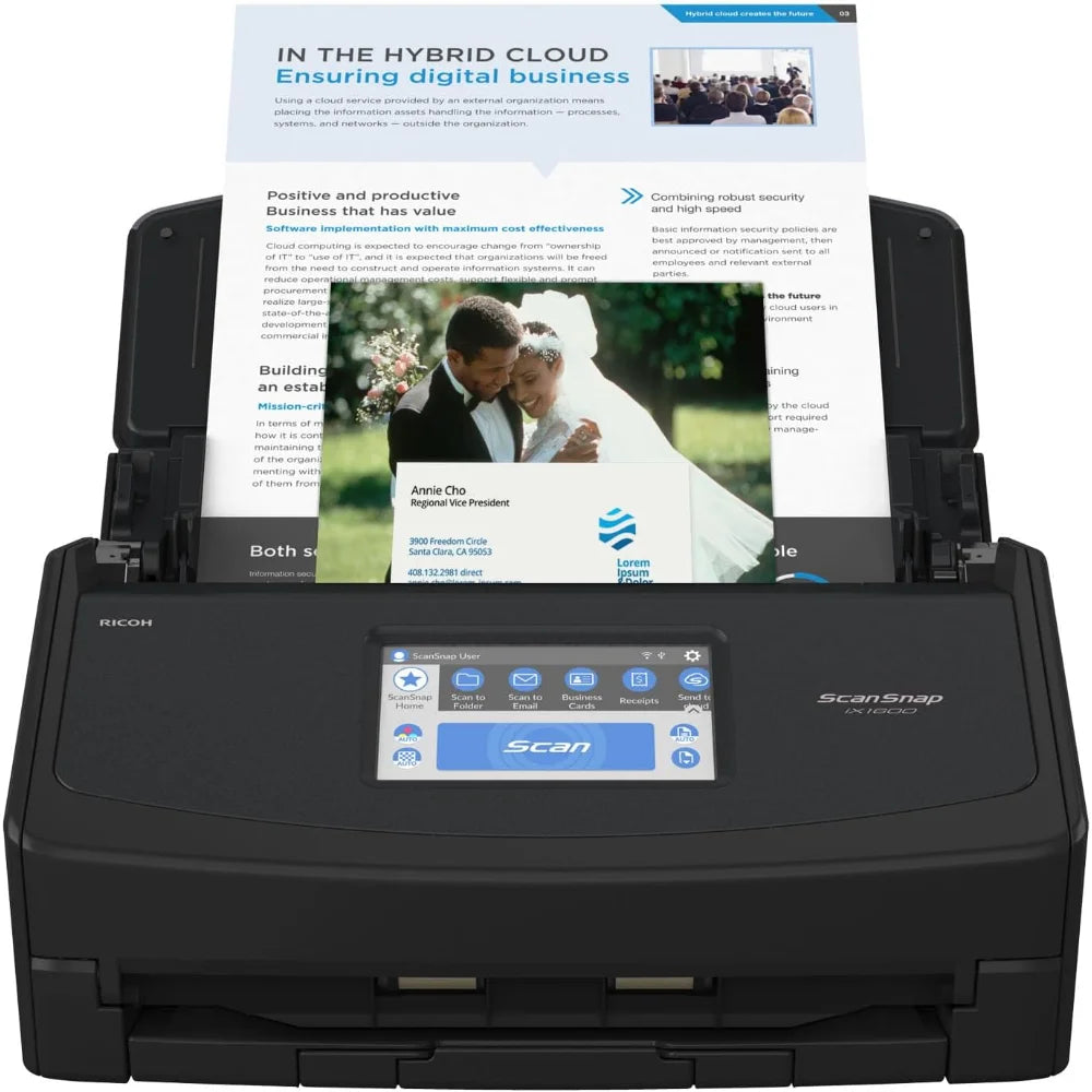 iX1600 Wireless or USB High-Speed Cloud Enabled Document, Photo & Receipt Scanner with Large Touchscreen